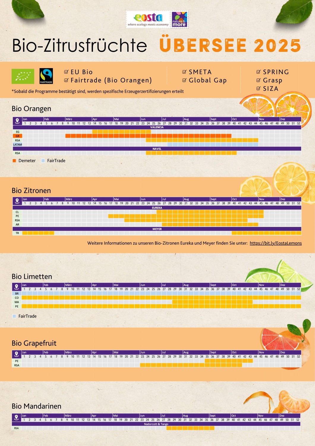 Seit 1990 sind wir ein vertrauenswürdiger Name für Bio-Zitrusfrüchte. Von Orangen, Zitronen und Limetten bis hin zu Grapefruits und Mandarinen - wir liefern Qualität, Transparenz und Wirkung.