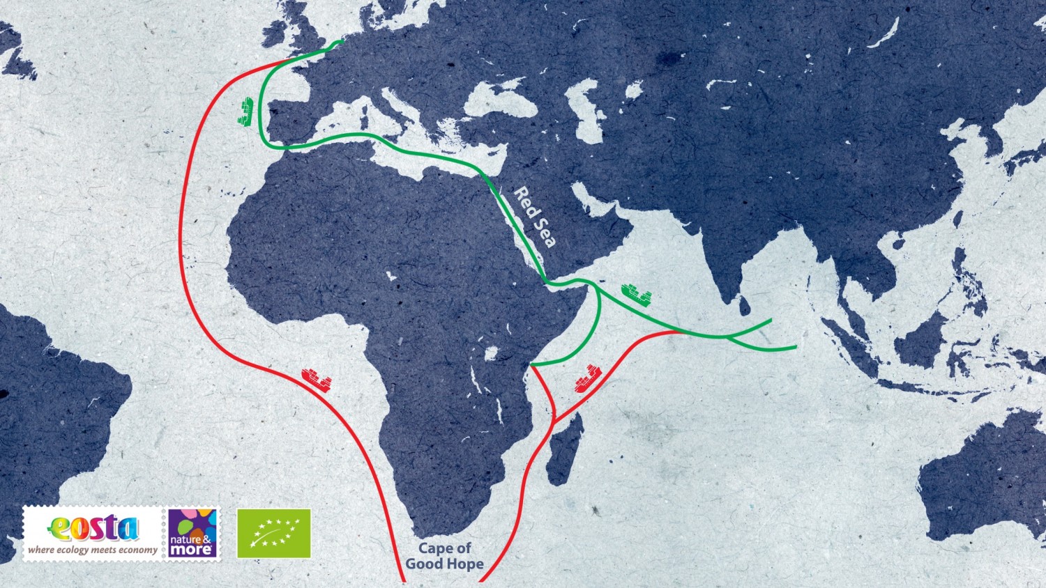 Good news for logistics: shipping company Maersk has reopened the shipping route via the Red Sea. As a result, our ships - including those carrying Organic Raingrown Avocados from Kenya - no longer have to detour via the Cape of Good Hope.